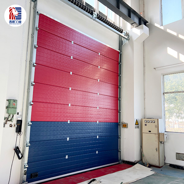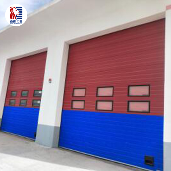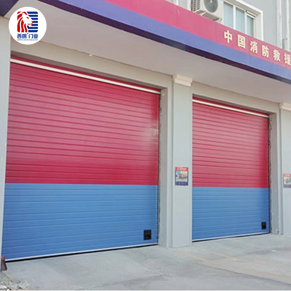 消防提升门常被使用在消防大队、消防救援中心、机场消防车库等场所,常用颜色为全红或上红下蓝门板,具有多门一键开启且与警铃联动的功能,具有保温防盗、提高出警效率的优点。